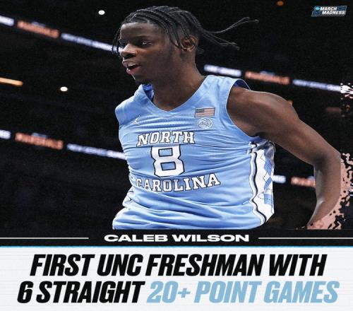 明年的热门新秀!凯莱布威尔逊连续6场20+打破北卡新生纪录!