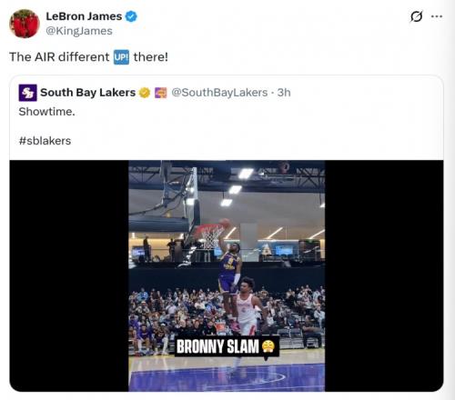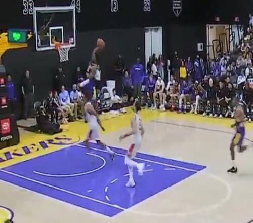 布朗尼反击一条龙单臂劈扣!老爹詹姆斯:上面的空气与众不同啊!