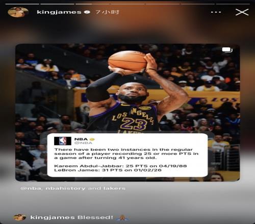 创41岁之后历史最高单场得分!詹姆斯转发NBA官方纪录帖:很幸运