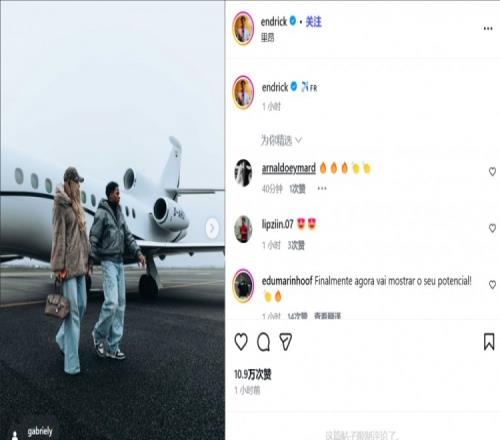 恩德里克社媒晒登机照,与妻子一起飞往法国加盟里昂